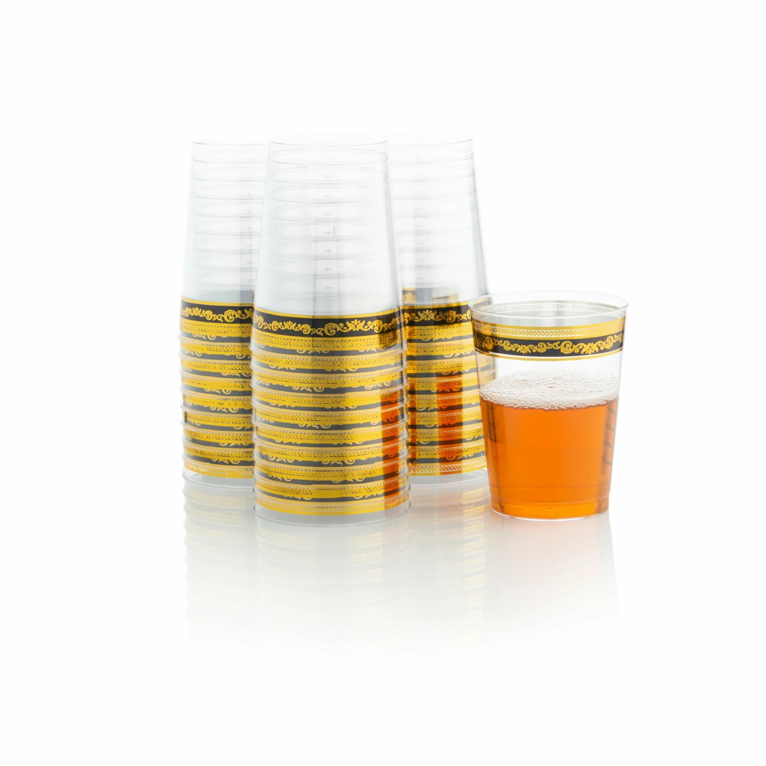 Going disposable doesnβt mean you have to sacrifice your event’s aesthetics. At Posh Setting, we offer you a stylish reusable and recyclable alternative to boring old disposable cups. Our quality crystal clear cups are beautifully designed with patterned gold and black rim, which is carefully finished with high qualityΒ materials and cannot be scratched off.