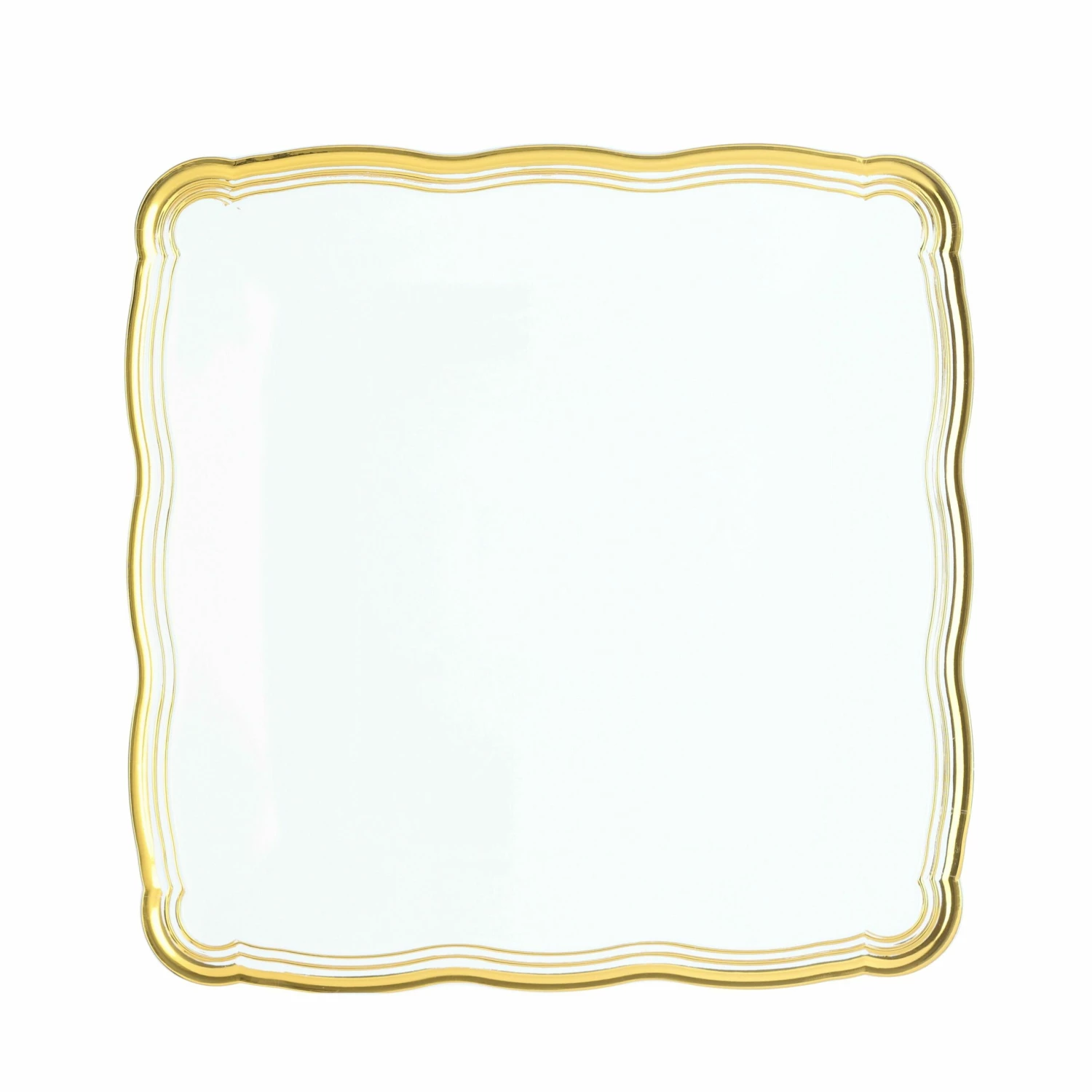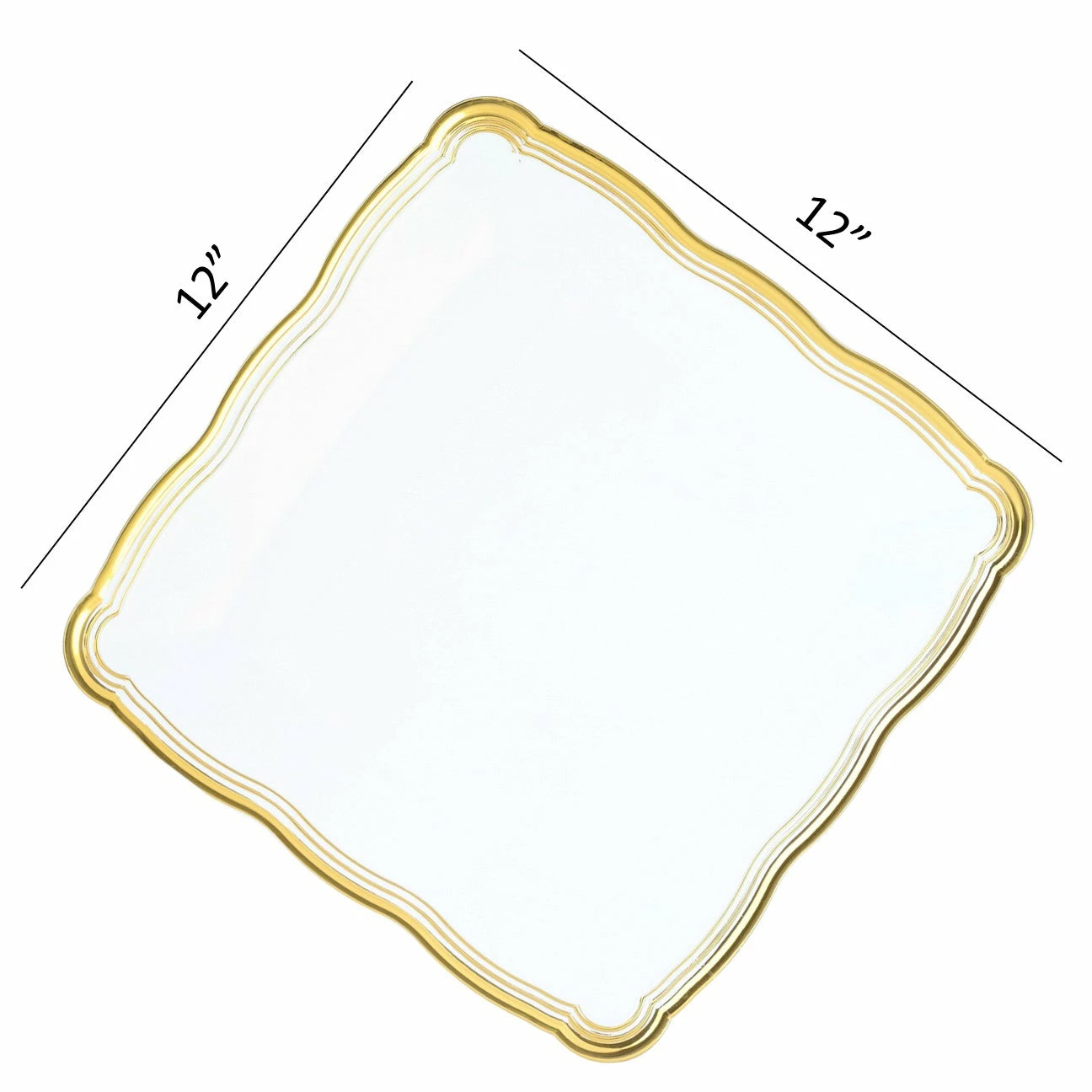 Serve appetizers and snacks to guests with this gold rimmed square white serving tray.Β Great for catering formal events and hosting family reunions. The perfect decorative tray and party platter for use at weddings, holiday parties, dinners, baby showers, or any catered events.