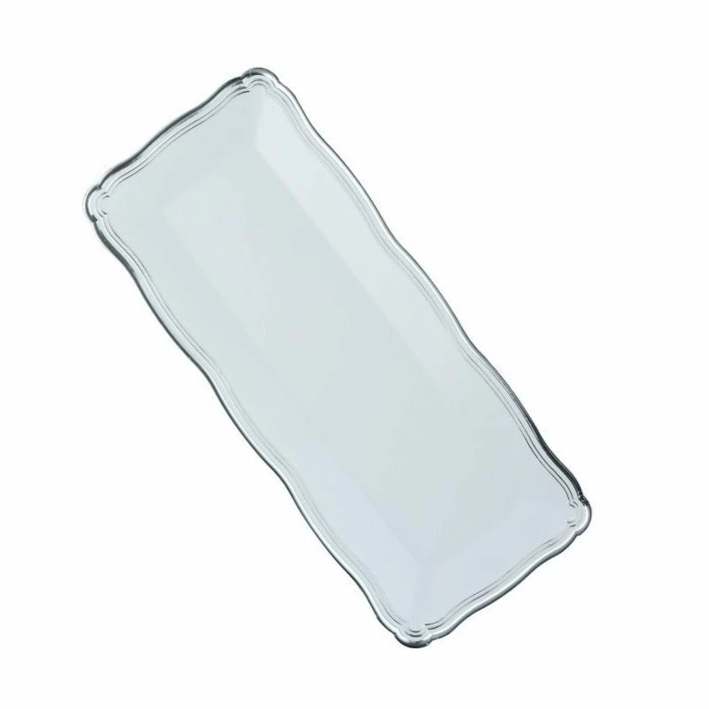 Serve appetizers and snacks to guests with this silver rectangular white serving tray.Β Great for catering formal events and hosting family reunions. The perfect decorative tray and party platter for use at weddings, holiday parties, dinners, baby showers, or any catered events.