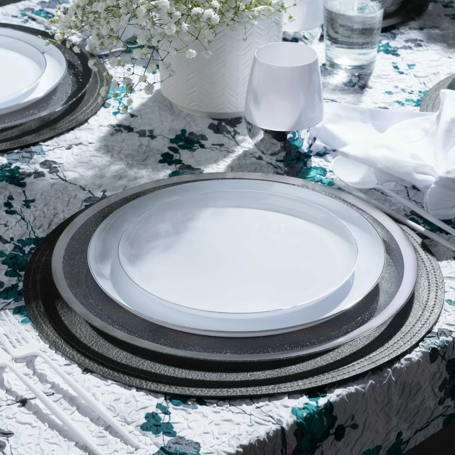 Turn any event into more upscale and elegant with thisΒ beautifulΒ white and silver dinner partyΒ plates by Posh Setting. The graceful color combination, sturdy design will make it a great choice for both indoor & outdoor events.