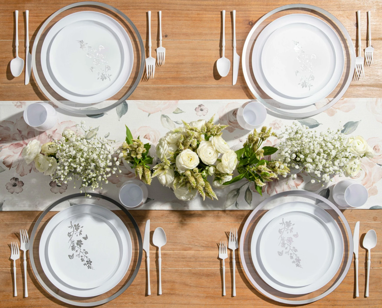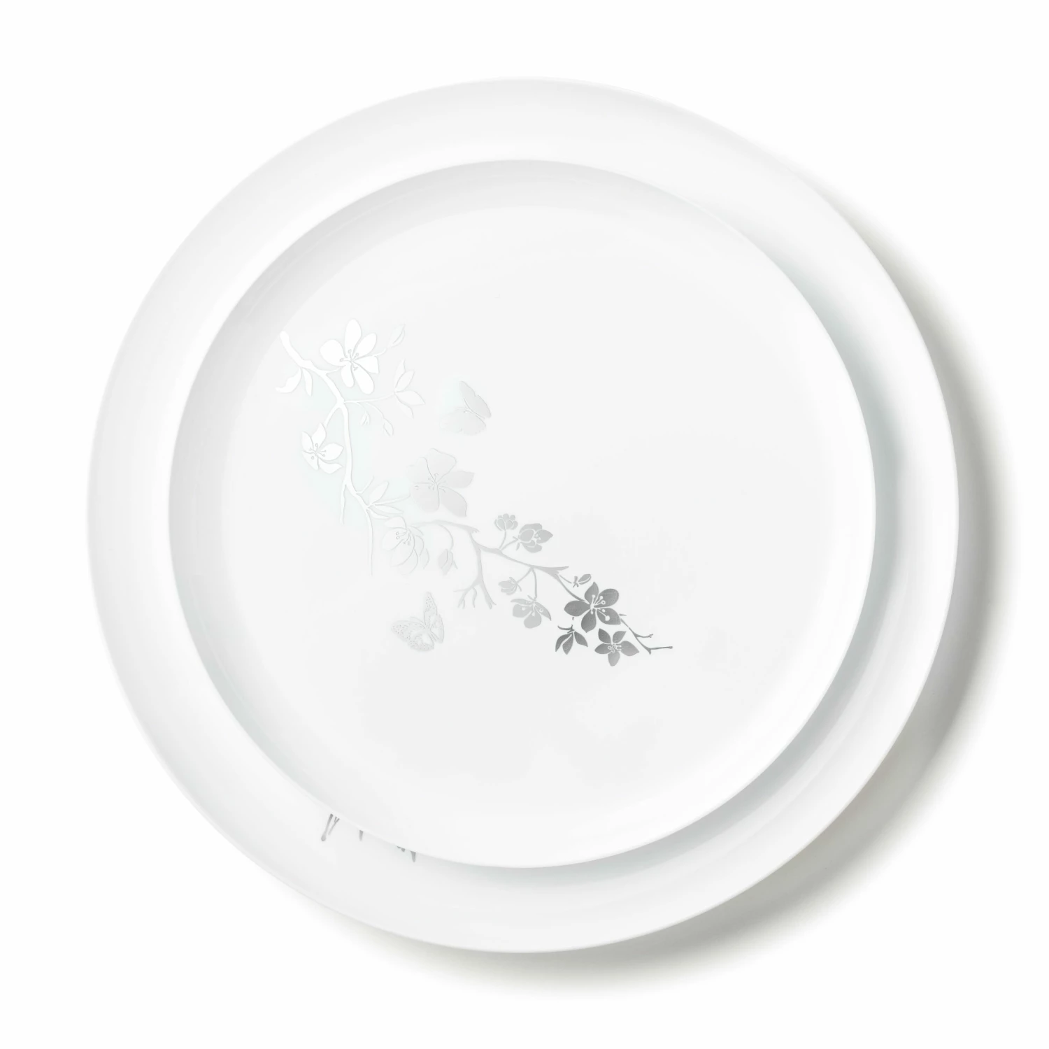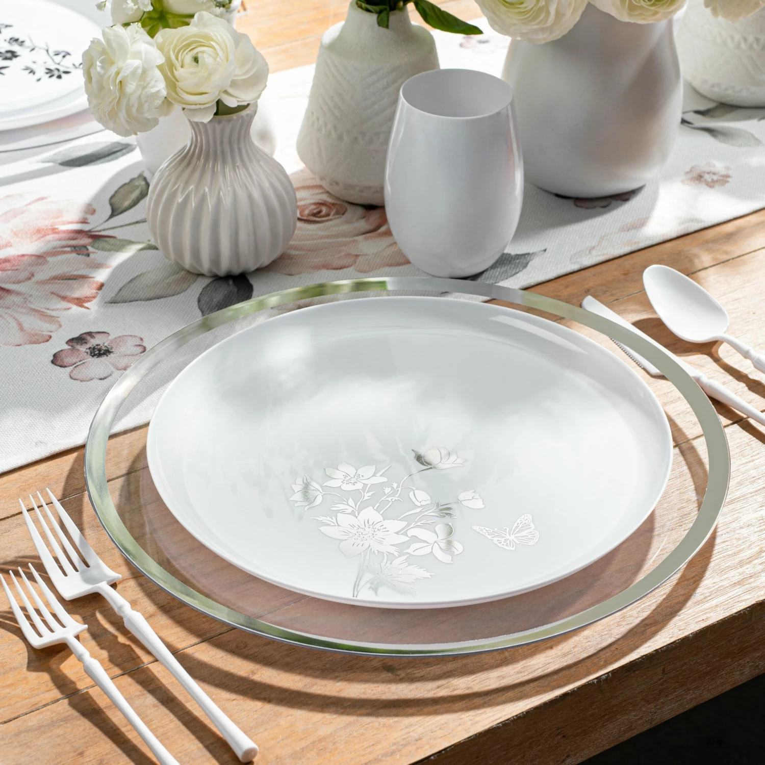 Turn any event into more upscale and elegant with thisΒ beautifulΒ white andΒ silver dinner partyΒ plates by Posh Setting. The graceful color combination, sturdy design will make it a great choice for both indoor & outdoor events.