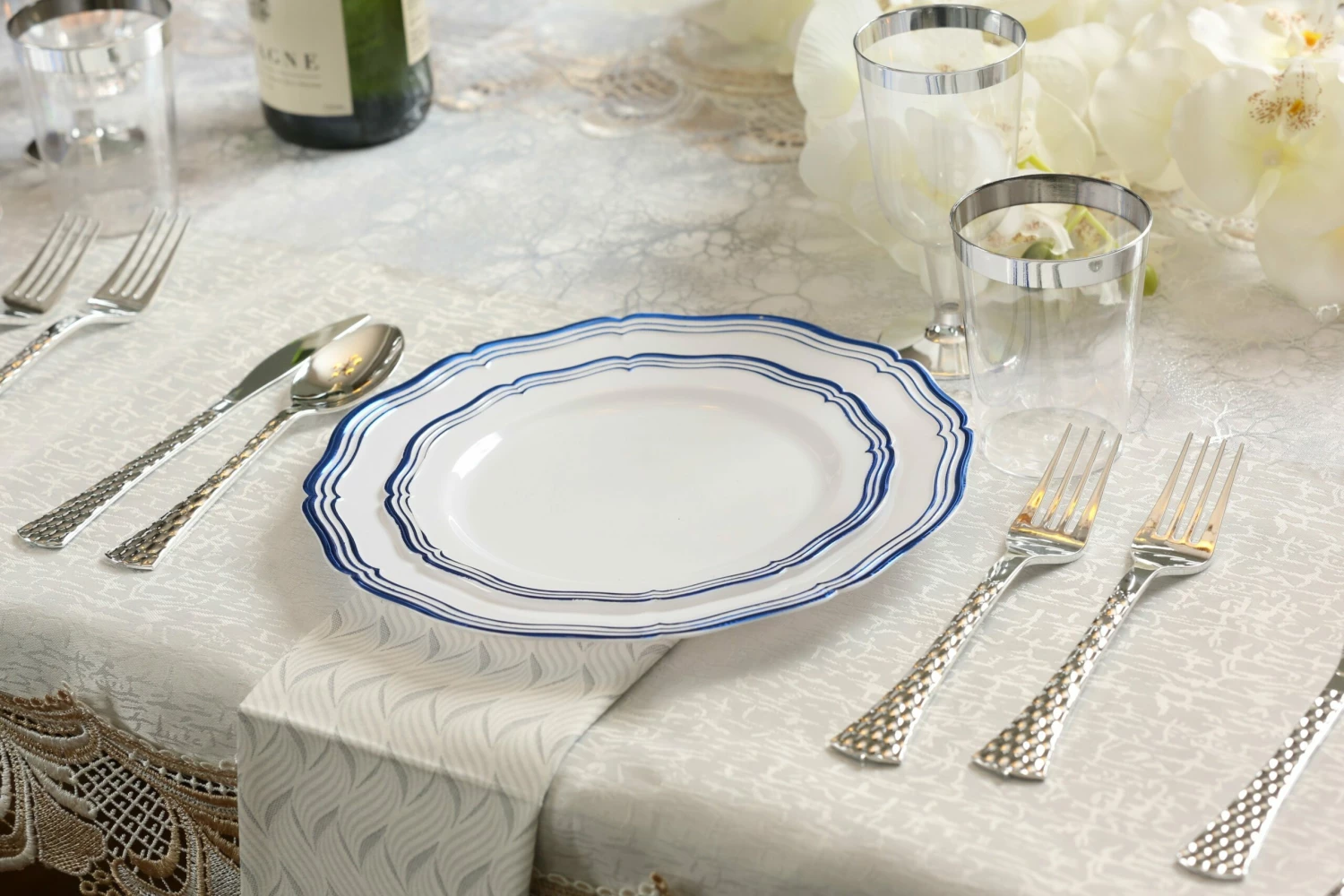 This luxurious disposable plastic plate easily gives sophisticated flair to a variety of different events. Great for family dinners, birthdays, celebrations,Β weddings,Β receptions,Β baby showers,Β banquets, Thanksgiving, Halloween, Christmas Holiday,Β familyΒ gatherings, business dinners and basically any event where you want your guests to feel warm, welcoming, and truly magical.
