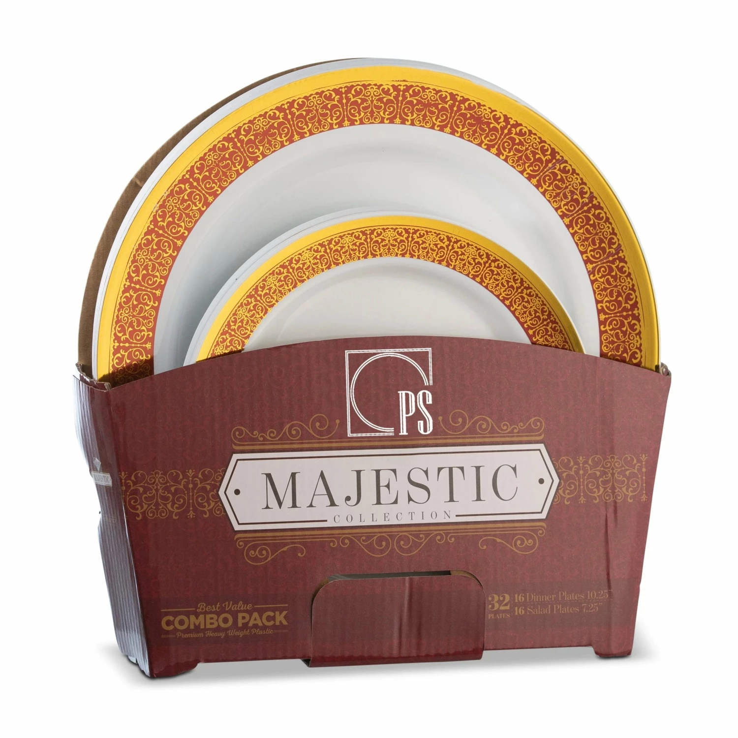 These round, elegant plastic plates with its burgundy and gold designed border will give your event an elegant touch without distracting you from the main event. Drop the hassle of being worried about your expensive dishes getting lost or broken. Best of all, they have a real china look appearance. Make your event clean up simple with these plates, just toss them in the garbage and walk away as a guest.