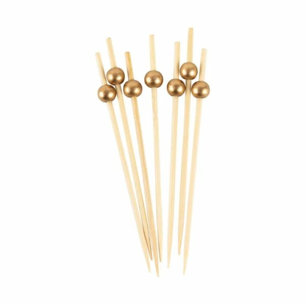 Complete the presentation of sliders or other stacked food combos with a beautiful gold bamboo pick. These bamboo picks hold food together while enhancing the plating of a dish.