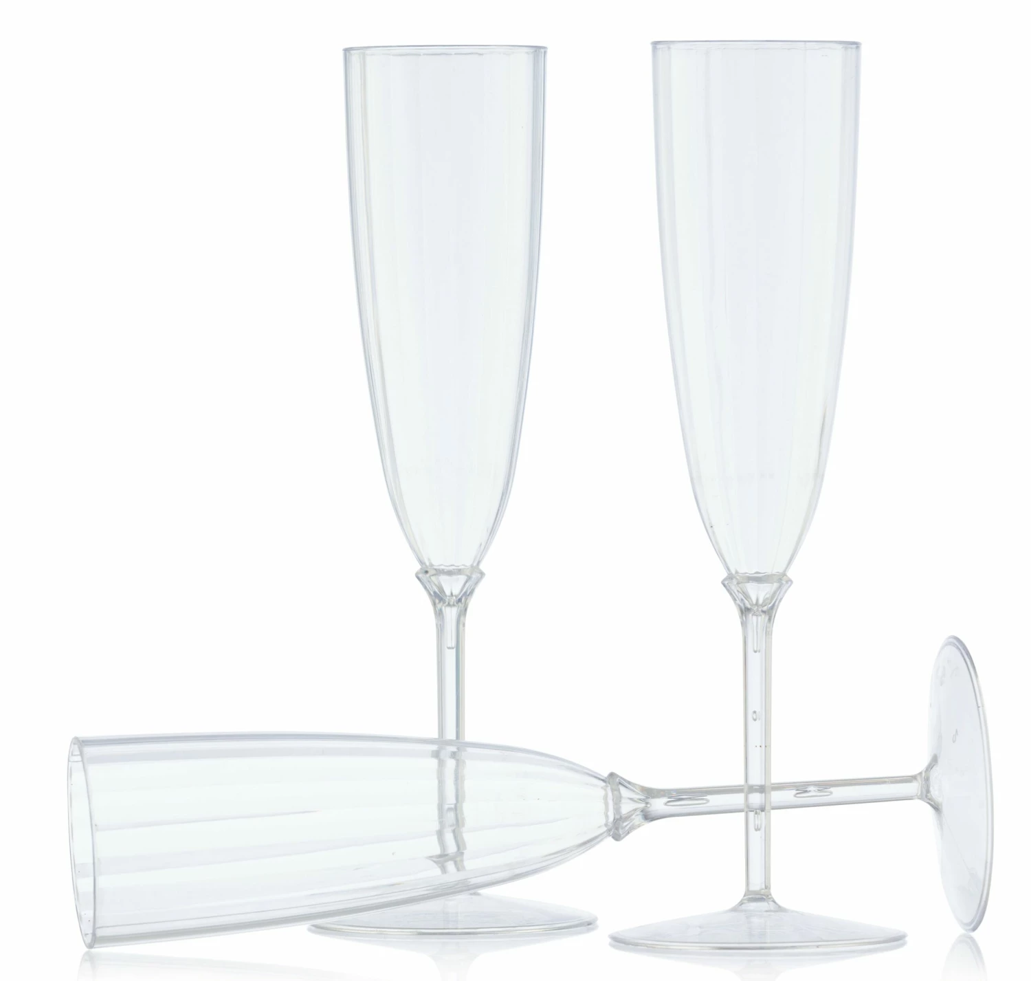 Looking for an economical champagne glass for your wedding reception? How about something that looks and feels elegant for a wine tasting? We have the perfect disposable crystal-like plastic champagne flutes for your needs. Made from a durable, unbreakable material these plastic champagne flutes are right at home no matter how upscale your event or party may be.