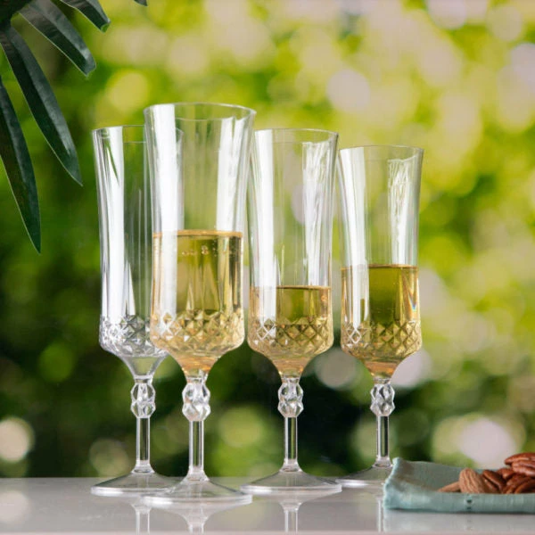 What, these are plastic?! Yes, although youβd never guess. These imitation crystal champagne flutes look so real, your table will look absolutely regal. Use them for upscale parties, dinners, receptions or weddings. Your guests will be wowed.
