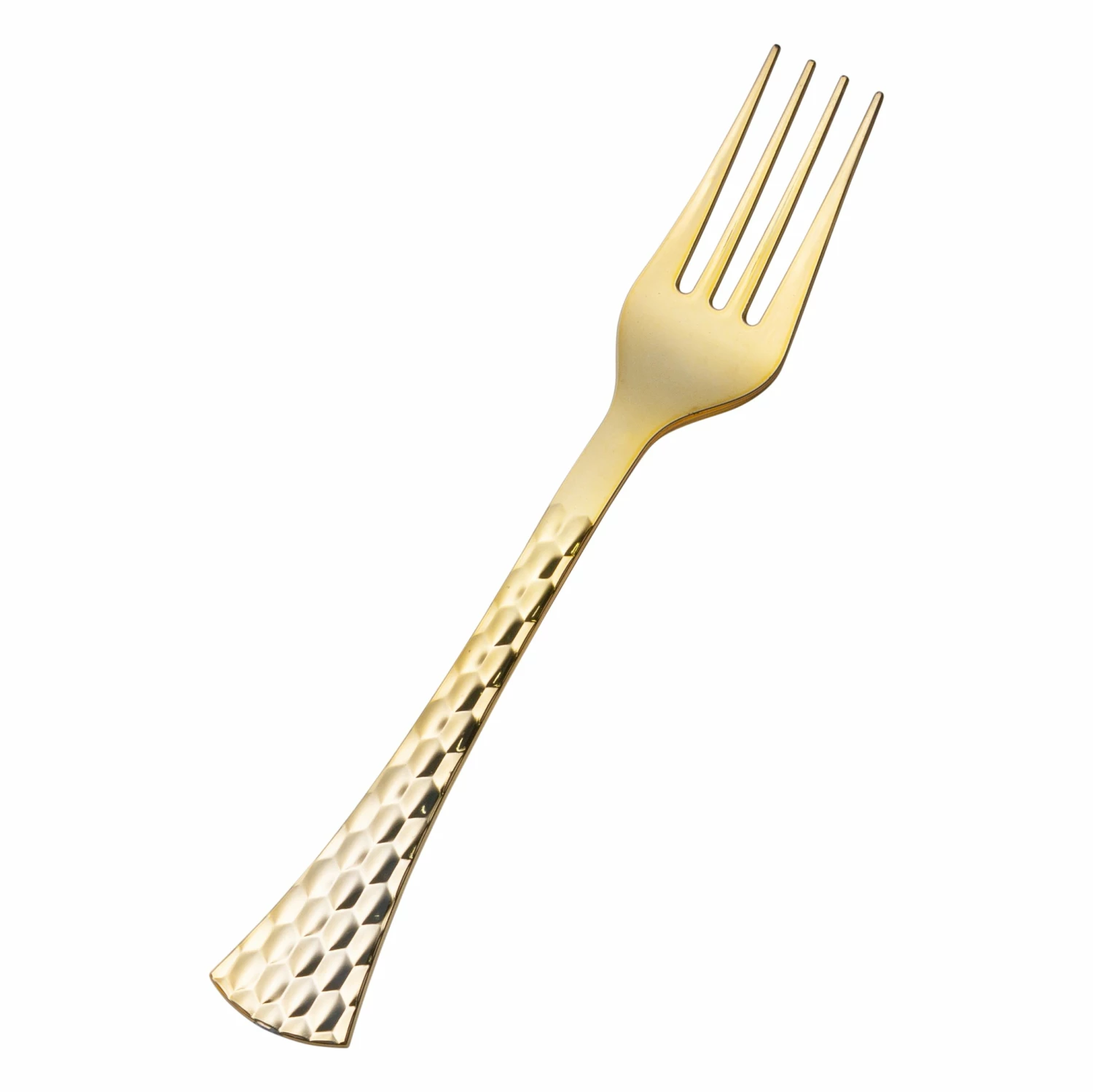 When it comes to plastic cutlery, the hammeredΒ collection has one of the most unique designs of any we have. It adds a touch of class and sophistication to any holiday or Thanksgiving dinner and provides an elegant look for your wedding reception. The hardest part of any event is the cleanup when it’s all done. Why not get the look of China without the mess? Hammered Gold Plastic Cutlery looks like the real thing, but gets tossed into the garbage when done. China-like tableware is more popular than ever, so let us provide it for your special day.