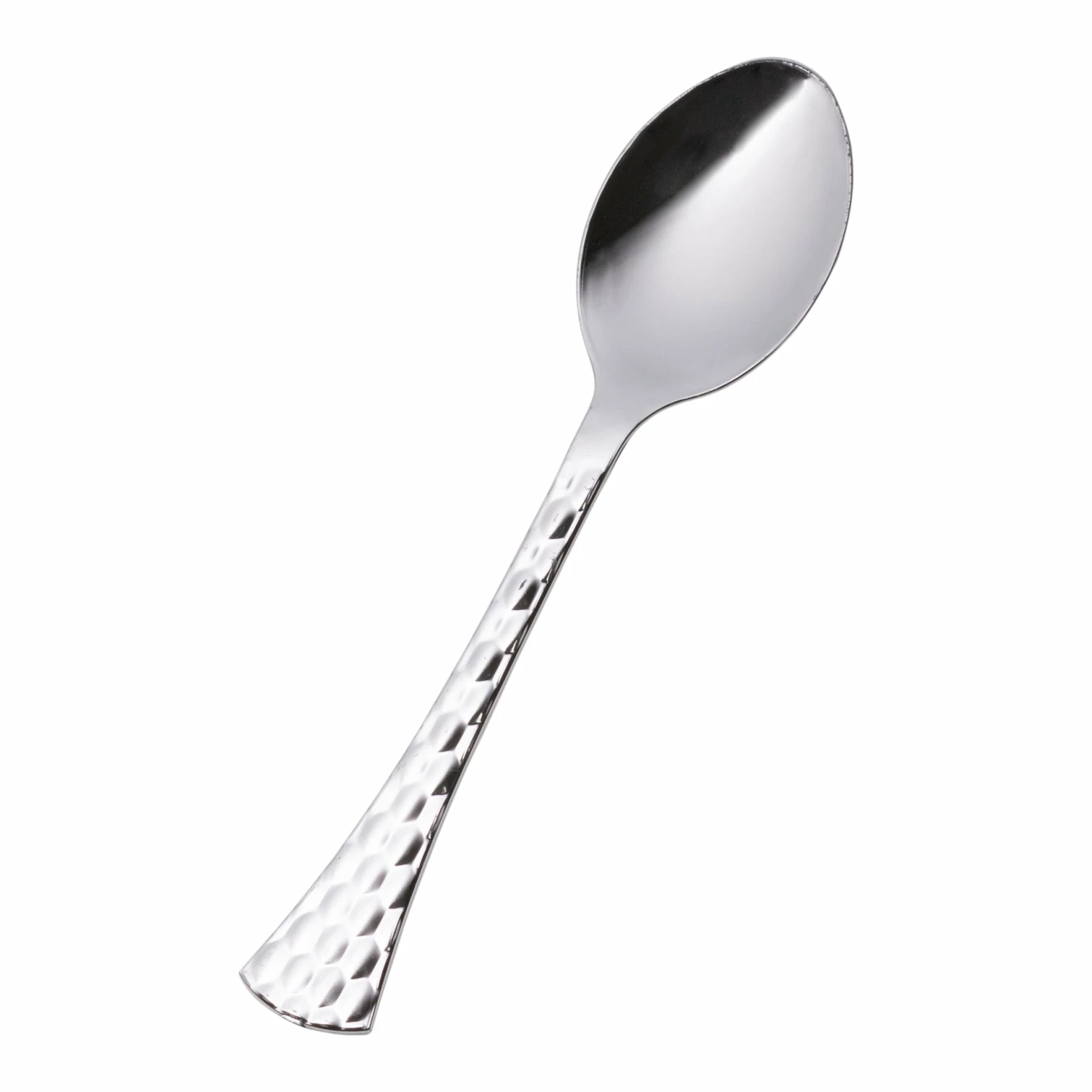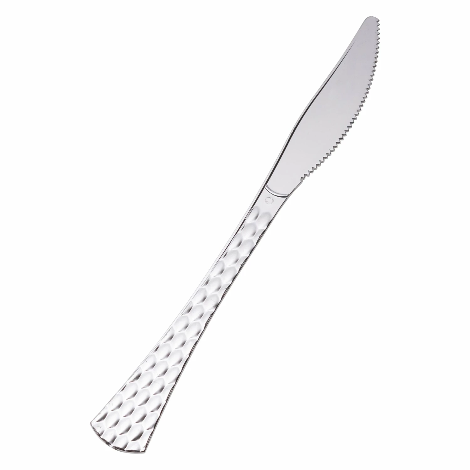 When it comes to plastic cutlery, the hammeredΒ collection has one of the most unique designs of any we have. It adds a touch of class and sophistication to any holiday or Thanksgiving dinner and provides an elegant look for your wedding reception. The hardest part of any event is the cleanup when it’s all done. Why not get the look of China without the mess? Hammered SilverΒ Plastic Cutlery looks like the real thing, but gets tossed into the garbage when done. China-like tableware is more popular than ever, so let us provide it for your special day.