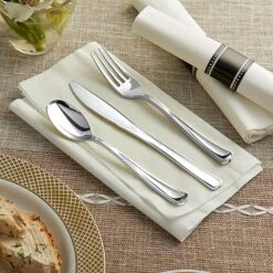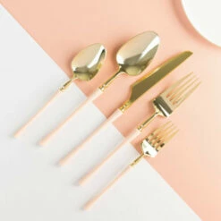 New β€οΈ Posh Setting Gold Disposable Plastic Cutlery in White Napkin Rolls Set-Setting for 10 β