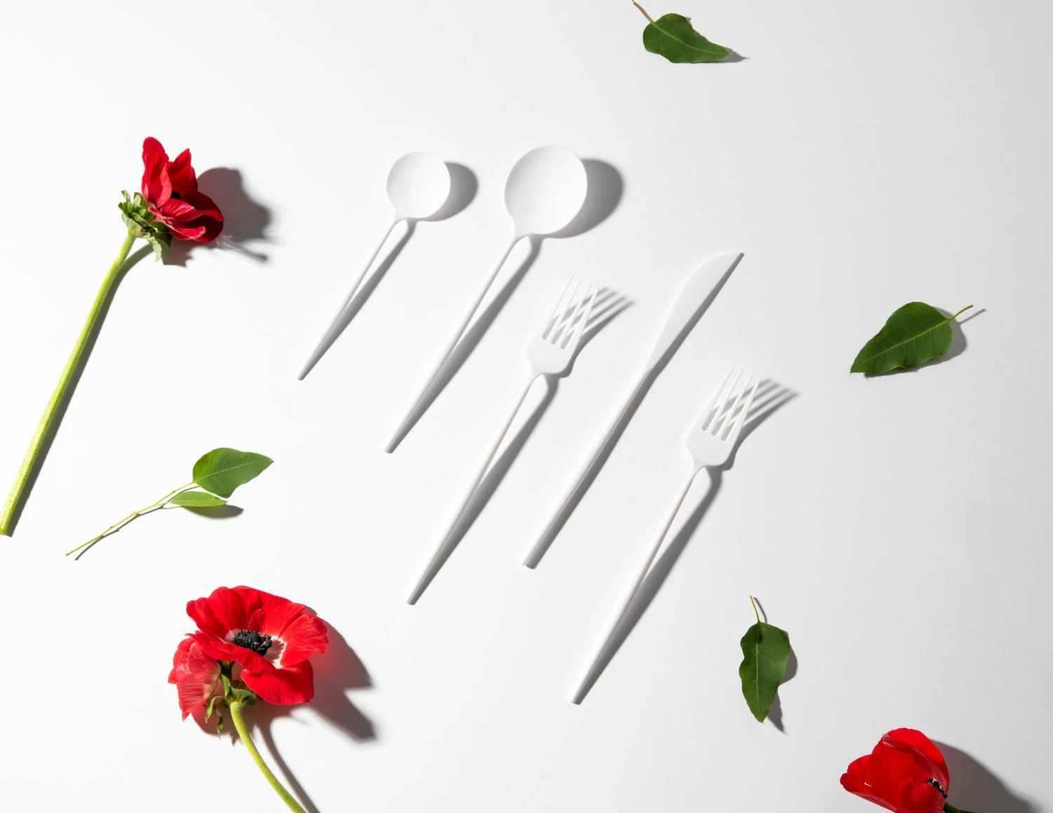 This beautiful andΒ modernΒ white plastic silverware set is composed of high-rated heavyweight plastic materials rendering it strong enough for every type of food you might be serving. These flatware are 100% food grade and safe to use for a fine dining experience.