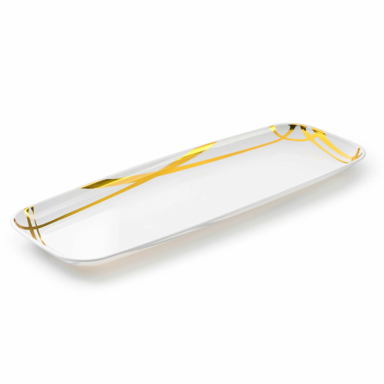 Serve appetizers and snacks to guests with this white and gold oval serving tray. Great for catering formal events and hosting family reunions. The perfect decorative tray and party platter for use at weddings, holiday parties, dinners, baby showers, or any catered events.