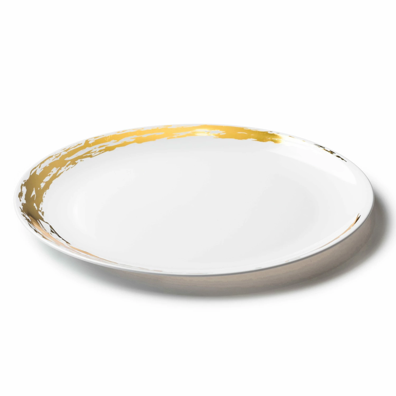 Serve appetizers and snacks to guests with thisย white and gold round serving tray.ย Greatย for catering formal events and hosting family reunions. The perfect decorative tray and party platter for use at weddings, holiday parties, dinners, baby showers, or any catered events.