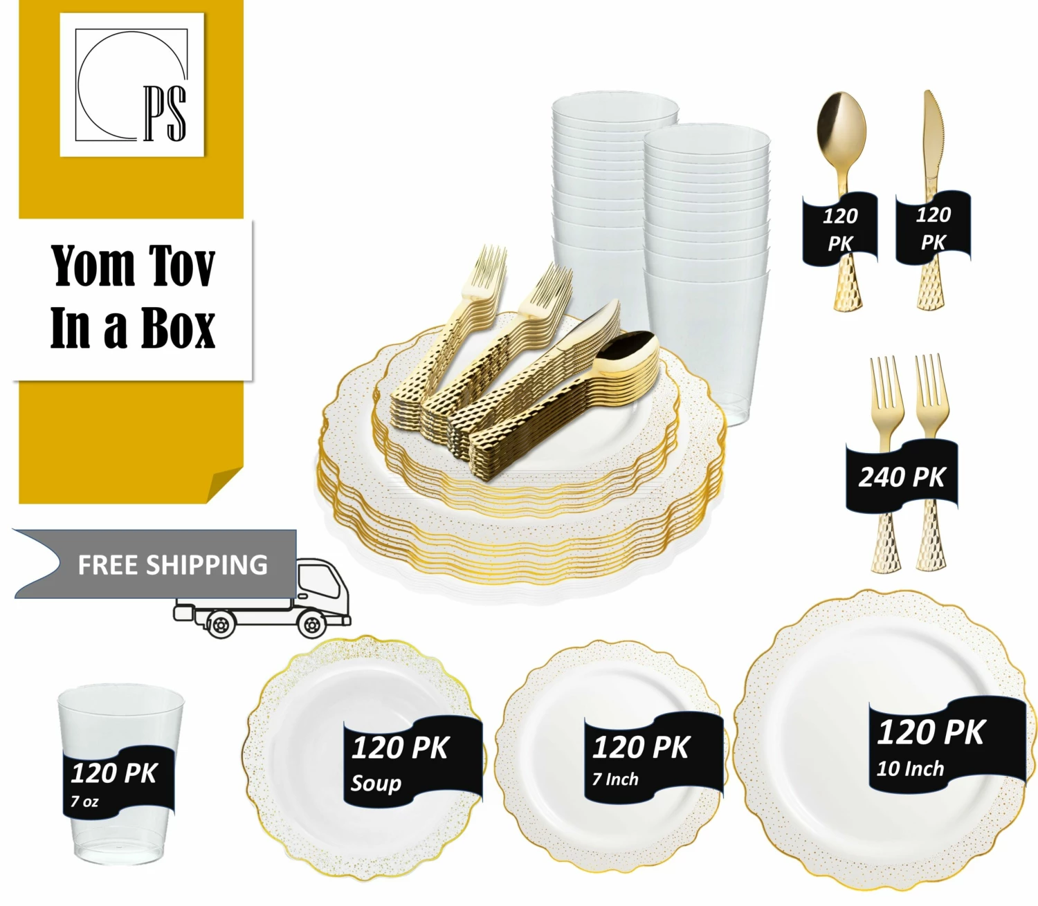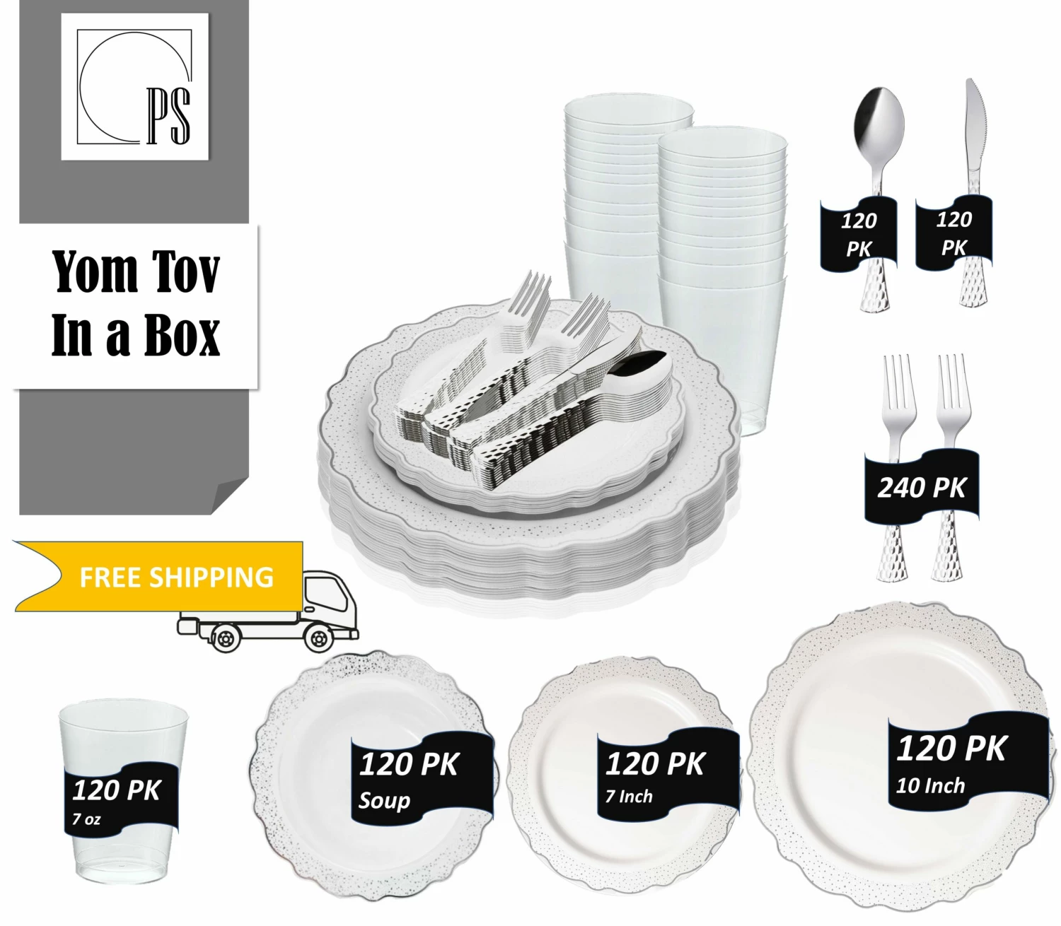 This 120-serving set by Posh Setting is it. With its elegant design, itβs great for any event or special occasion. This plastic dinnerware and plastic silverware set, will enhance your wedding table, Family Dinner, Holiday party, Baby Shower or any special event.