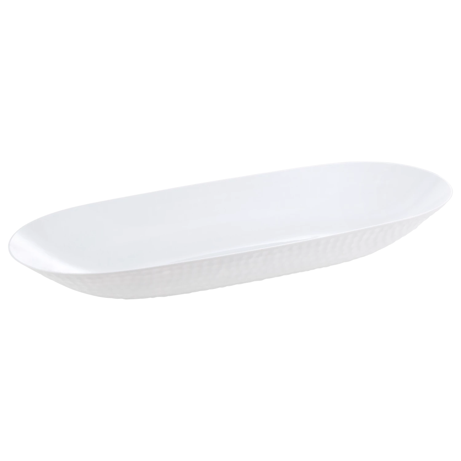 Serve appetizers and snacks to guests with this rectangular white serving tray.Β Great for catering formal events and hosting family reunions. The perfect decorative tray and party platter for use at weddings, holiday parties, dinners, baby showers, or any catered events.