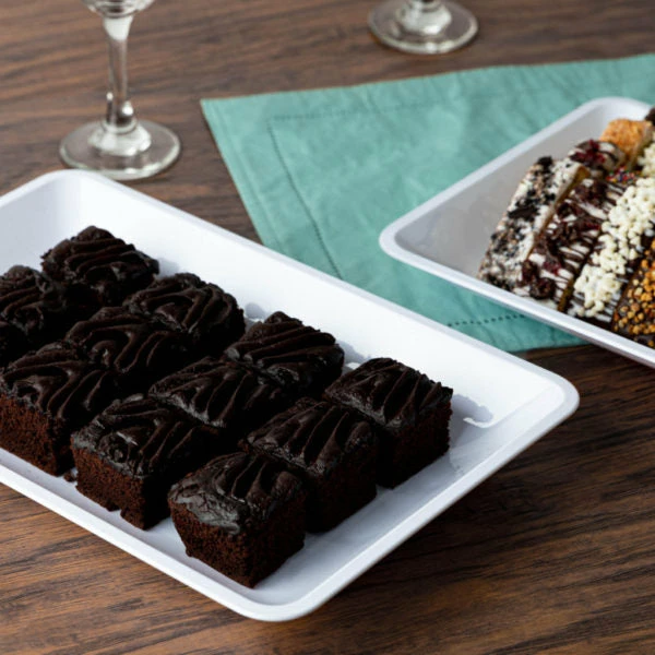 Let your creativity go wild with this shallow, white rectangular tray. Food presentation is everything. With this tray, you can create a show-stopping menu display that will take your meal to the next level.